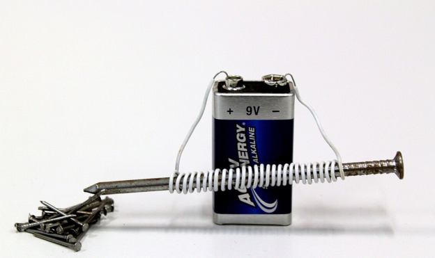 You could also create a magnet by passing electricity through a metallic object by wrapping coils around the metal as shown above. This is called an electromagnet.